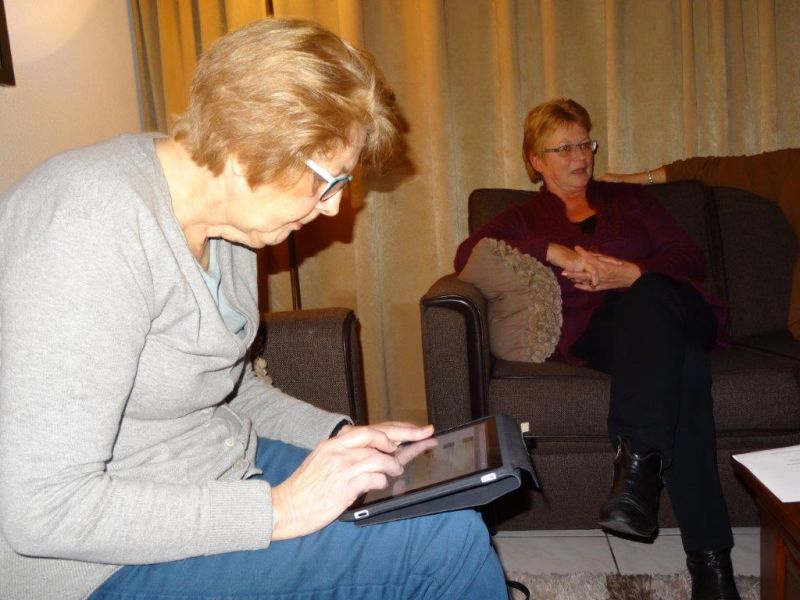Sis Els druk aan het zoeken op internet